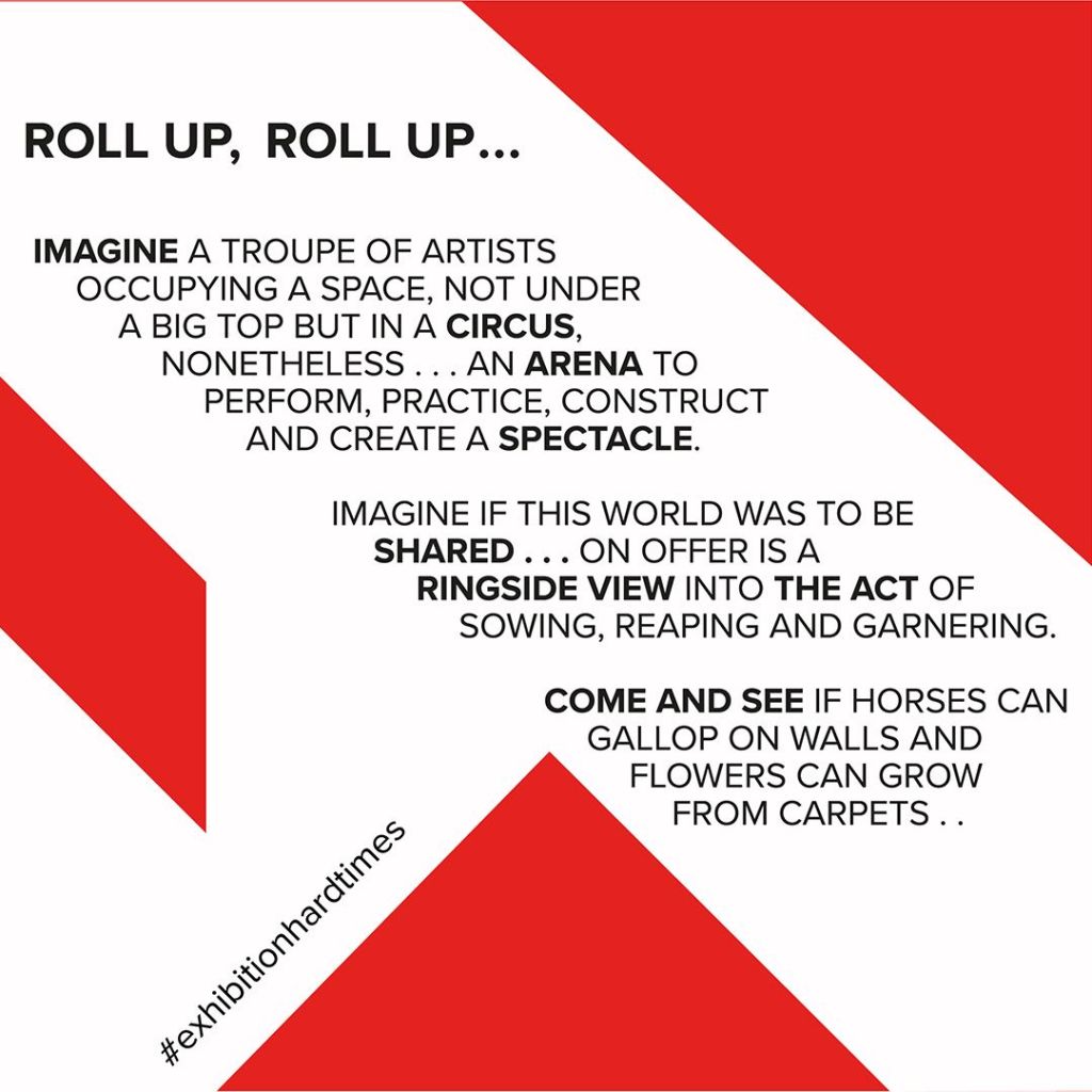 The Exhibition Hard Times was staged on the site of a former Barclays Bank directly underneath The Piccadilly Lights. For the duration of the show the work of fifteen artists evolved in the space, incorporating performance, improvisational making, talks, seminars, sculpture and creative writing workshops. This was a collaborative venture between all of the participating artists which brought to mind the dynamic trope of a circus troupe. Taking thematic inspiration from Dickens’ Hard Times the exhibition unfolded through 3 stages; Sowing, Reaping and Garnering. In Dickens’ novel the circus plays a pivotal role as a place for learning through experience, and this exhibition sought to bring a mindfulness to materials, place and people to unravel the uncertainties and contradictions held within our own ‘hard times’